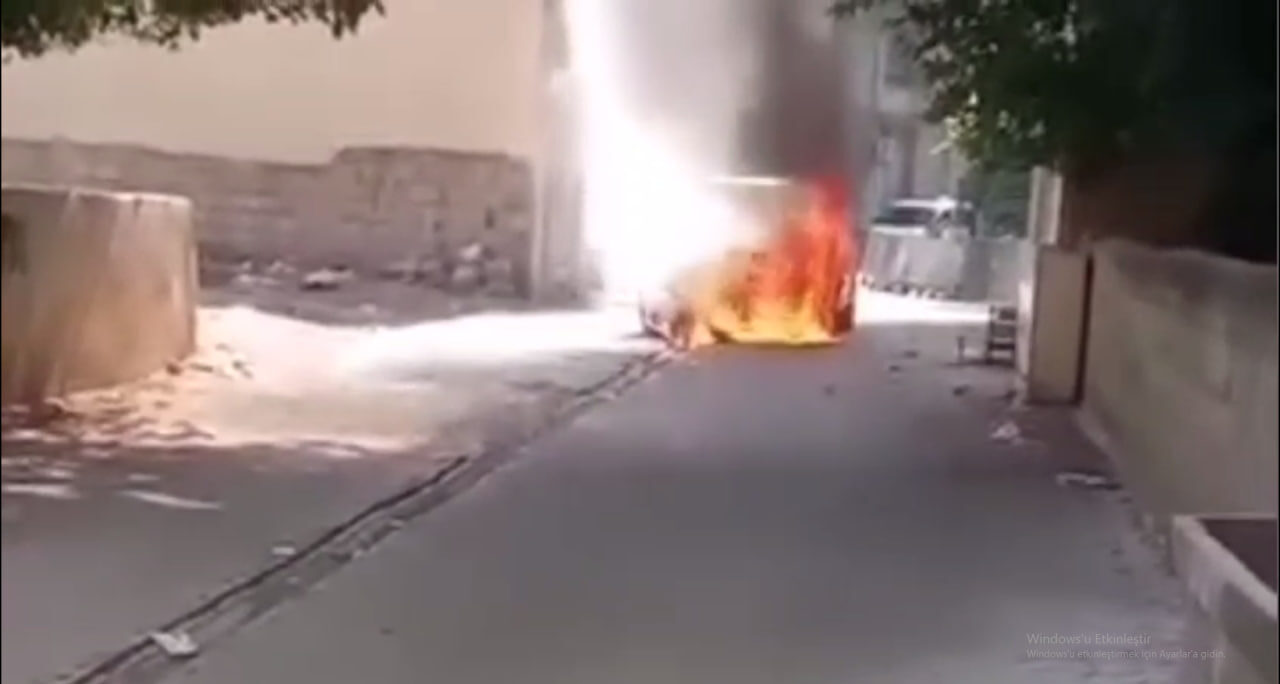 Kızıltepe’de Park Halindeki Otomobil Alev Aldı